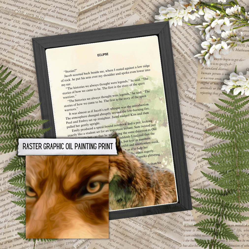 It's Time! A recreation of a book page from the Twilight book with a watercolor background and an image of Jacob as a Wolf.